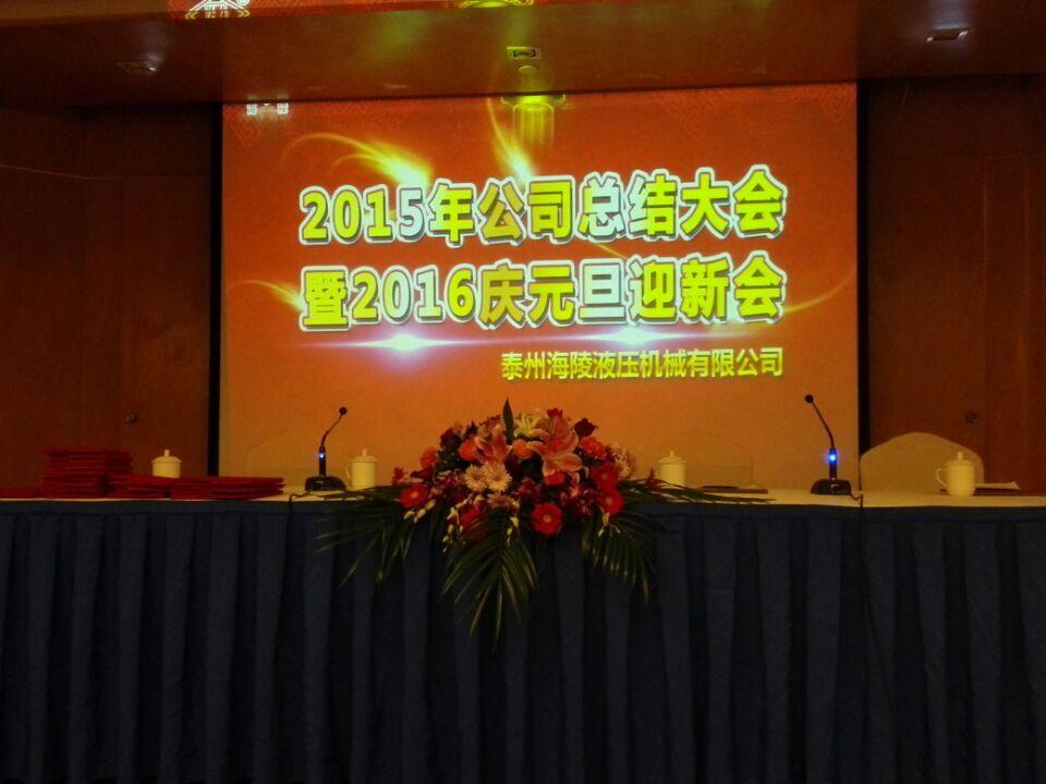 2015年12月30日,泰州海陵液压机械有限公司召开发年度总结表彰大会,会上公司总经理对过去一年的工作做了相关总结,对新的一年工作计划进行了讨论公布,要求全体员工同心携力,勇于担当为海陵事业积极奉献。并对2015年度先进个人、先进售后服务者、先进工作标兵及先进集体进行了表彰。